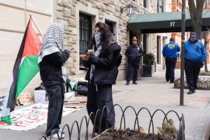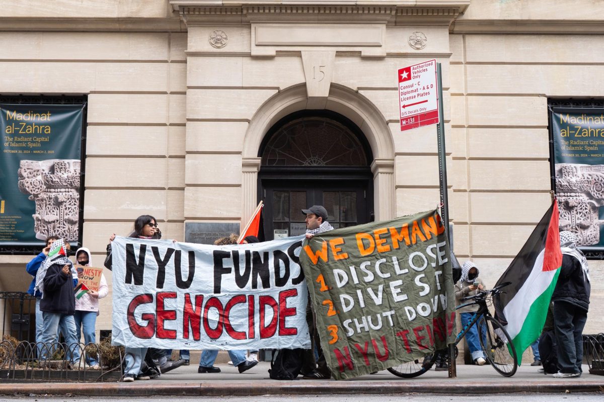 The picket, organized by NYU’s chapter of Students for Justice in Palestine, took place outside the Institute for the Study of the Ancient World on 84th Street. Protesters approached the trustees — each accompanied by four to five Campus Safety officers — as they left the building, asking them to briefly meet with students to discuss the school’s investments. Hamza, an NYU Law student at the demonstration, told WSN that while he approached trustees “civilly,” they still dismissed his requests.
