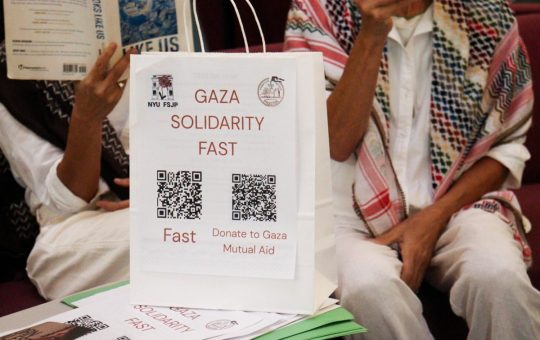 Around two dozen students and faculty gathered for their first weekly “Gaza Solidarity Fast” in Bobst Library on Wednesday, calling...